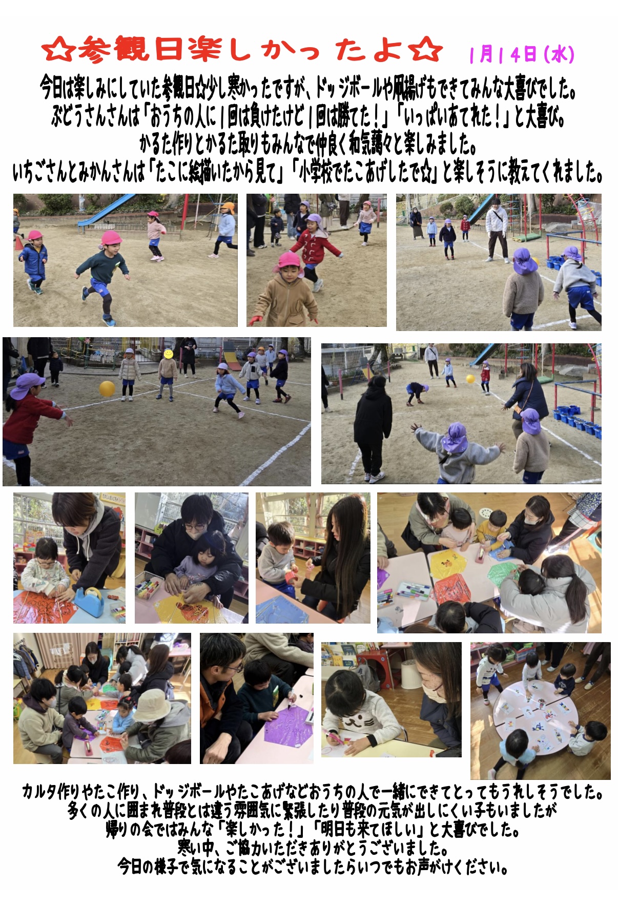 参観日楽しみにしています☆