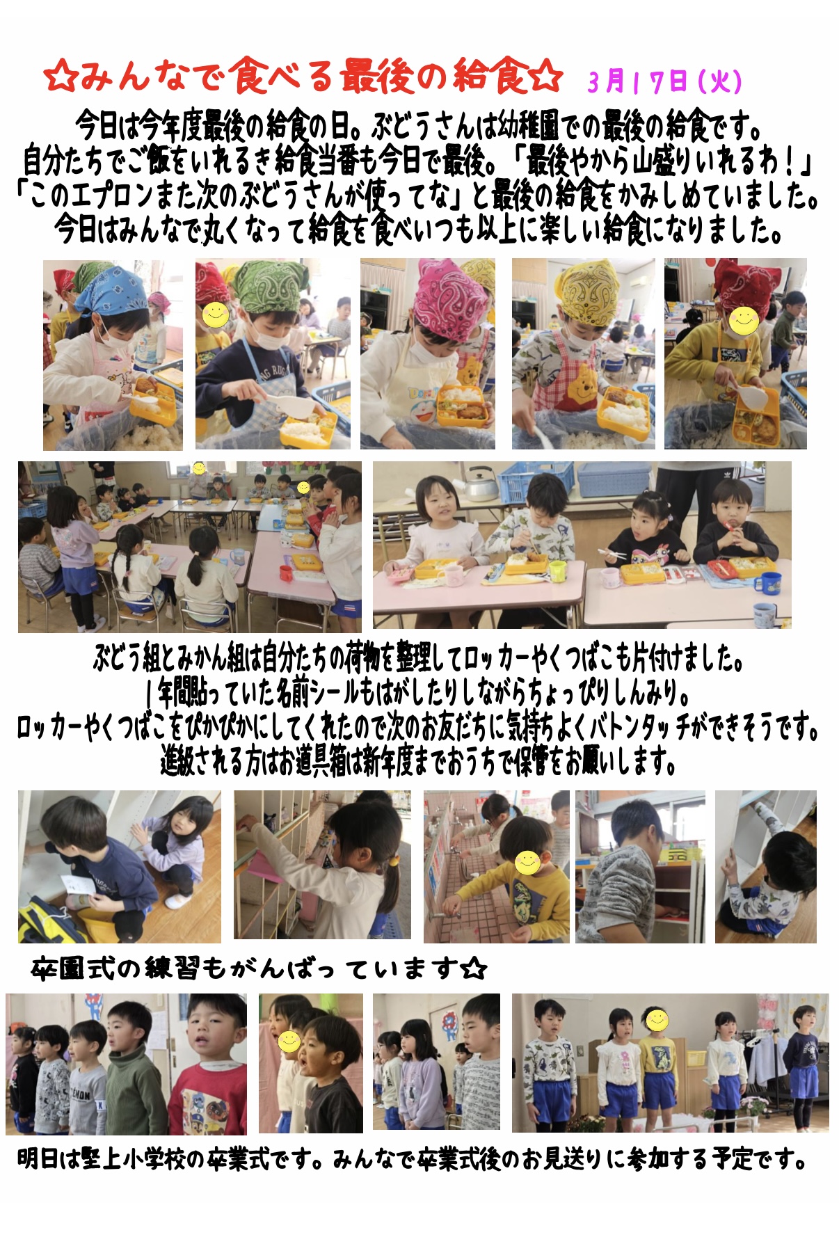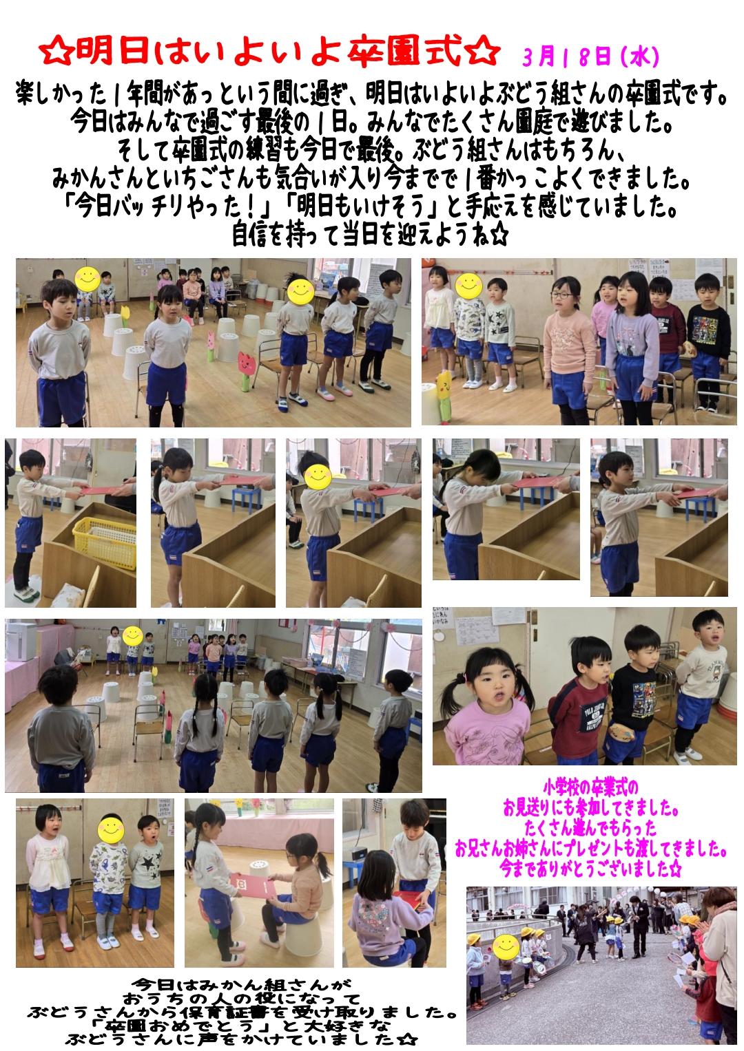明日はいよいよ卒園式